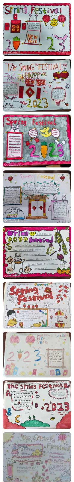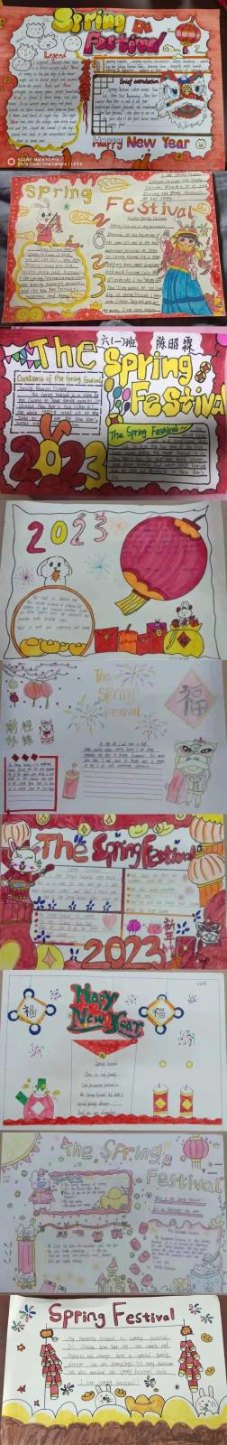爆竹声中一岁除,春风送暖入屠苏。一元复始,万象更新。2023年新春佳节,孩子们用一双双小手绘出了对新年的祝福。请欣赏我们六年级以“春节”为主题的手抄报。