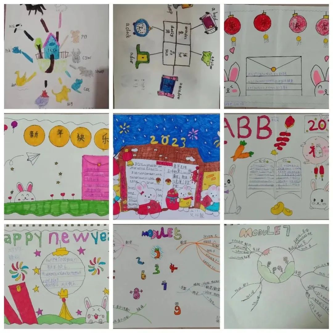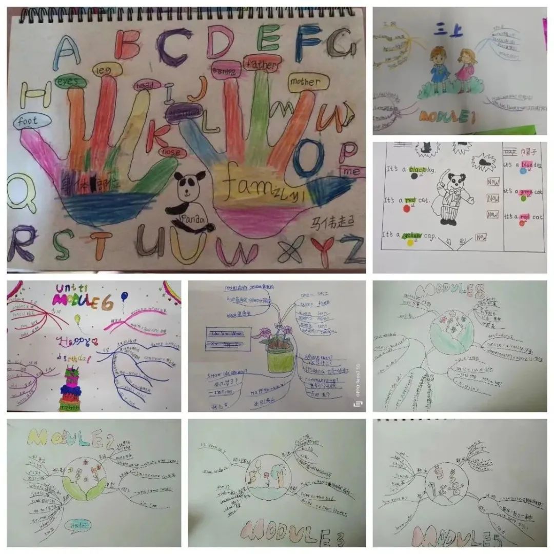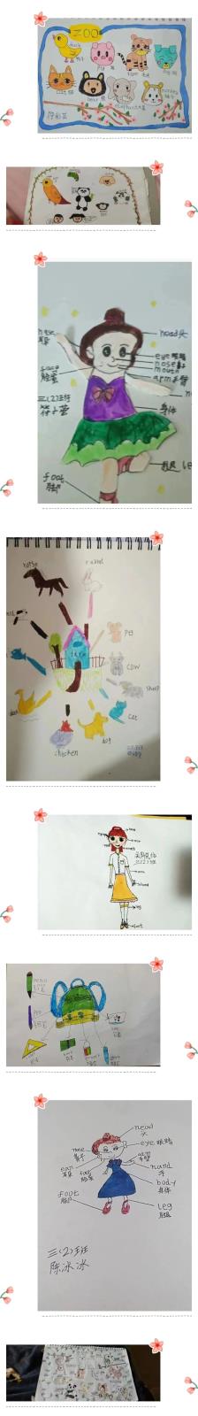 三年级是英语学习的起步阶段,重点是要培养孩子的学习兴趣,老师们潜心研究教学,立足学科特色,结合学情,设计了形式多样、体验感丰富的特色作业,作业注重培养孩子们正确的字母、单词及句子书写。孩子们运用手中的画笔,大胆创意,创造出一张张富有童真童趣的特色作业。