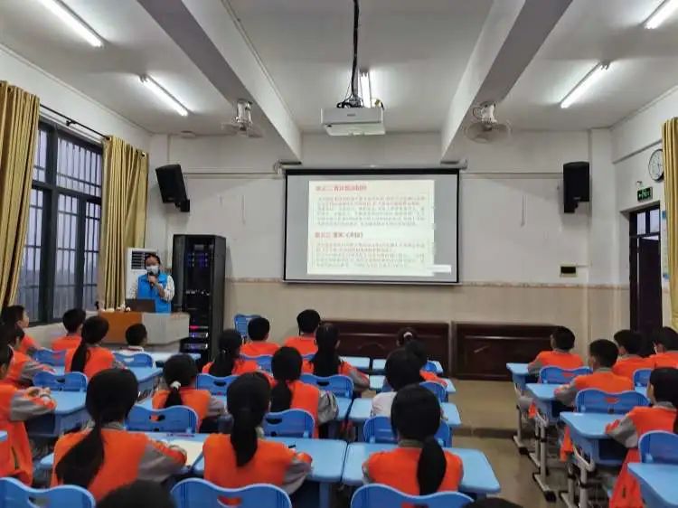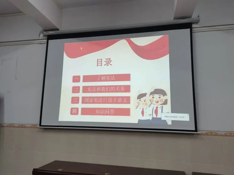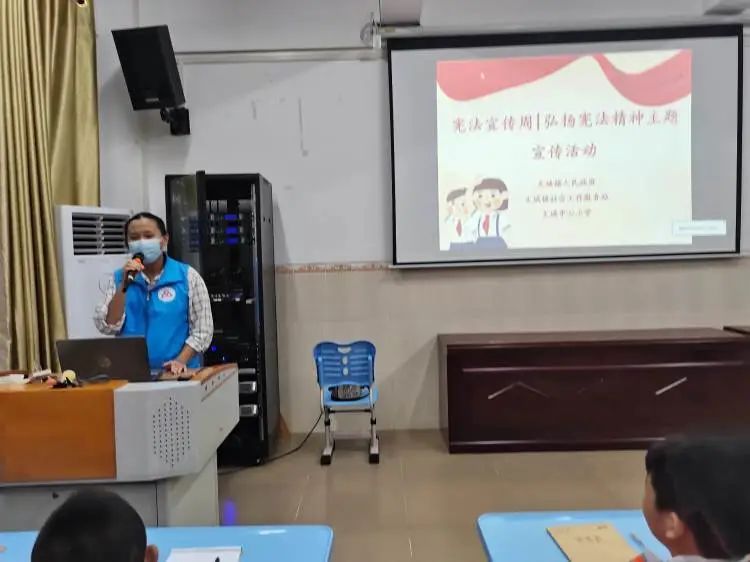 一段简短的自我介绍后,韩美雅站长主要从了解宪法,宪法和我们的关系,国家宪法日设立意义这三个方面来宣传宪法,最后是对学生进行知识问答环节。