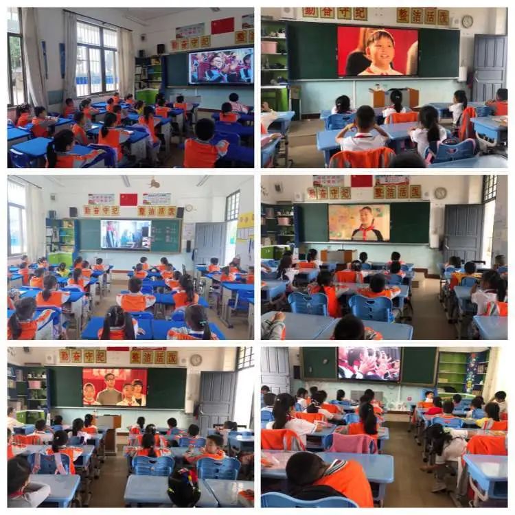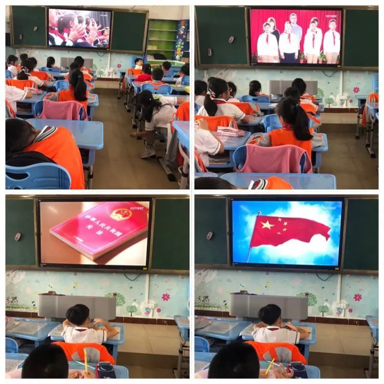 (图为学生们观看宪法晨读)