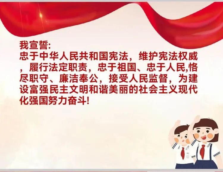 最后,本堂课在全体同学洪亮的宣誓中结束——我宣誓:忠于中华人民共和国宪法,维护宪法权威履行法定职责,忠于祖国、忠于人民,恪尽职守、廉洁奉公,接受人民监督,为建设富强民主文明和谐美丽的社会主义现代化强国努力奋斗!