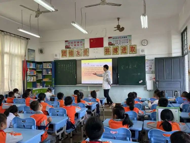 为普及宪法知识,提高学生知法守法的意识,营造文明、和谐的校园环境氛围。12月1日下午,文城镇社会服务站韩美雅站长为六年级同学带来了一节宪法宣传课。