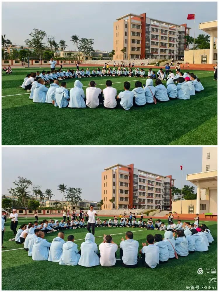 暖场时分,王轩校长特别设计“时光手绢”互动环节。执起绢帕,带领老师们重温童谣里的环形时光,全场秒变露天游乐场。六十余位教职工在环形追逐中笑靥如花。素绢不经意间栖落于覃鸿剑老师身后,这位帅气的体育老师即兴表演,现场瞬间漾开欢快的涟漪。