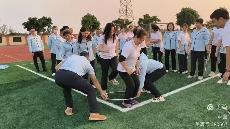 活动伊始,一场兔子舞作为破冰活动开启了本次活动。欢快的音乐响起,老师们纷纷加入队伍,跟随着节奏跳动。大家手搭着肩,蹦蹦跳跳,脸上洋溢着灿烂的笑容,平日的疲惫与拘谨在这一刻烟消云散,操场变成了欢乐的海洋。在轻松愉悦的氛围中,大家迅速打破隔阂,拉近了彼此的距离,为后续的活动做好了准备。