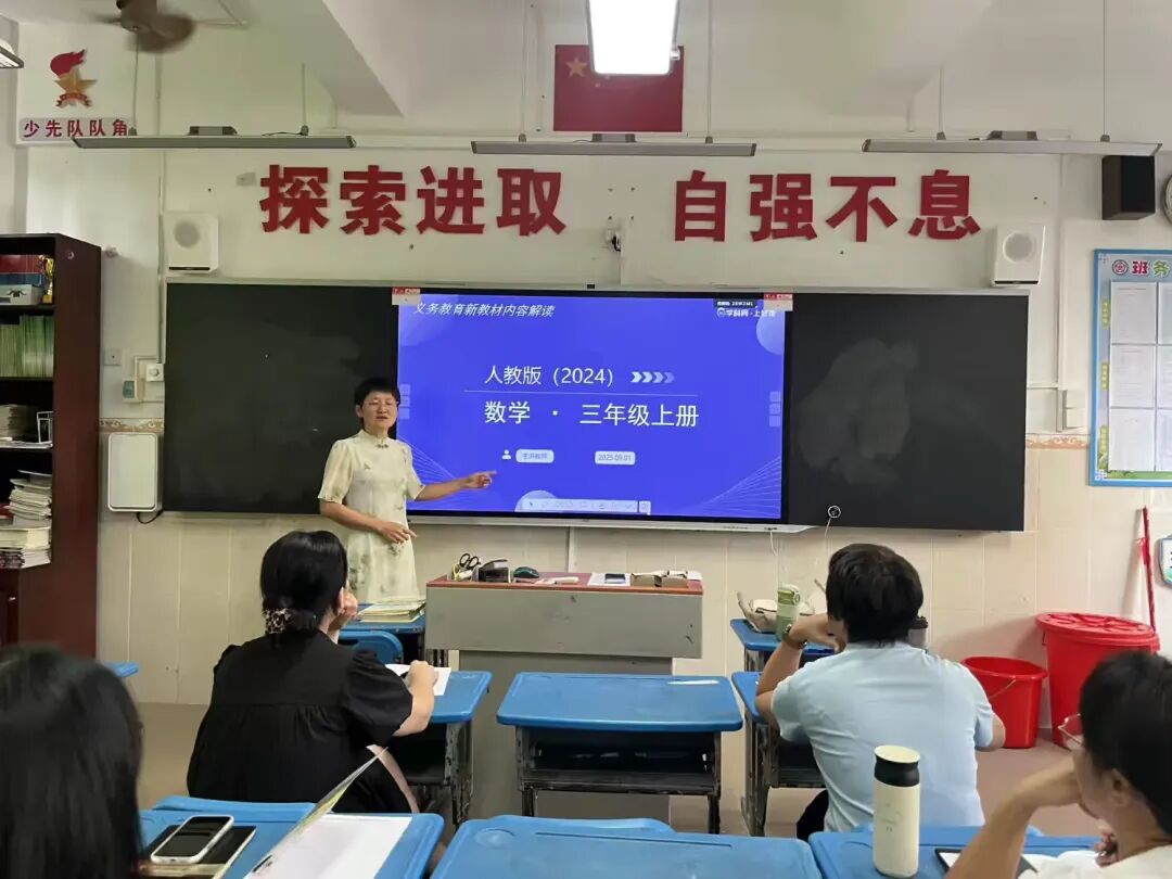 2025年8月27日,文昌市文城中心小学数学组开展新材料培训,由林飞云教研主任主讲,聚焦一至三年级新教材内容。此次培训旨在帮助教师深入理解教材变化,优化教学方法,提升低年级数学教学质量。