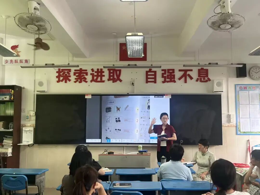 林主任邀请一年级潘俊芳老师对一年级的教学案例进行分析,潘老师以清晰的逻辑深度剖析新教材编写理念,从数与代数的启蒙设计,到图形的直观呈现,每一处细节都紧扣“素养导向”,引导教师关注一年级学生认知特点,用童趣化、生活化的方式,让抽象知识“落地生根” 。