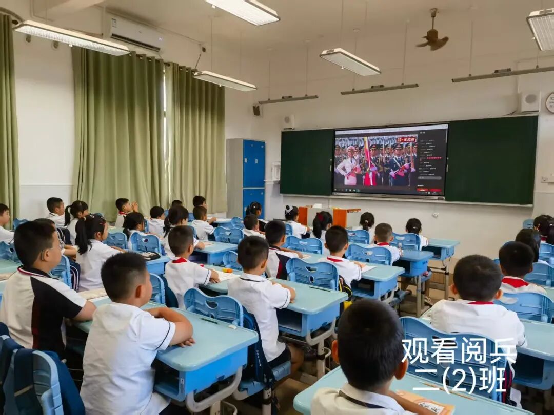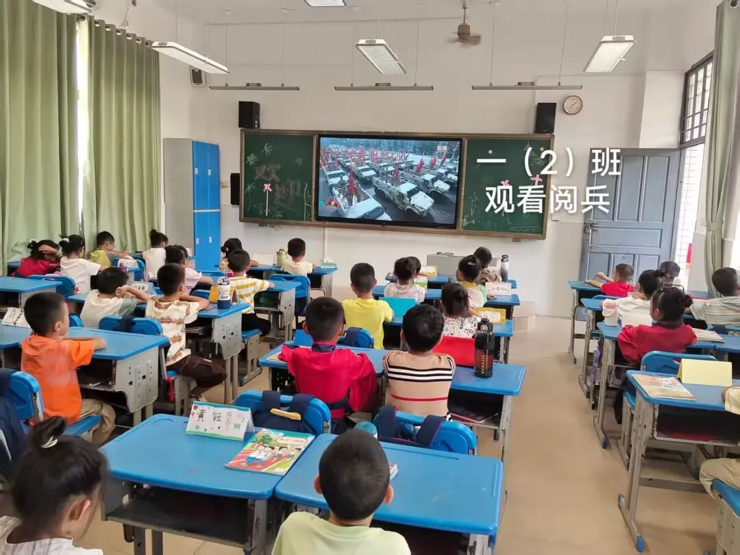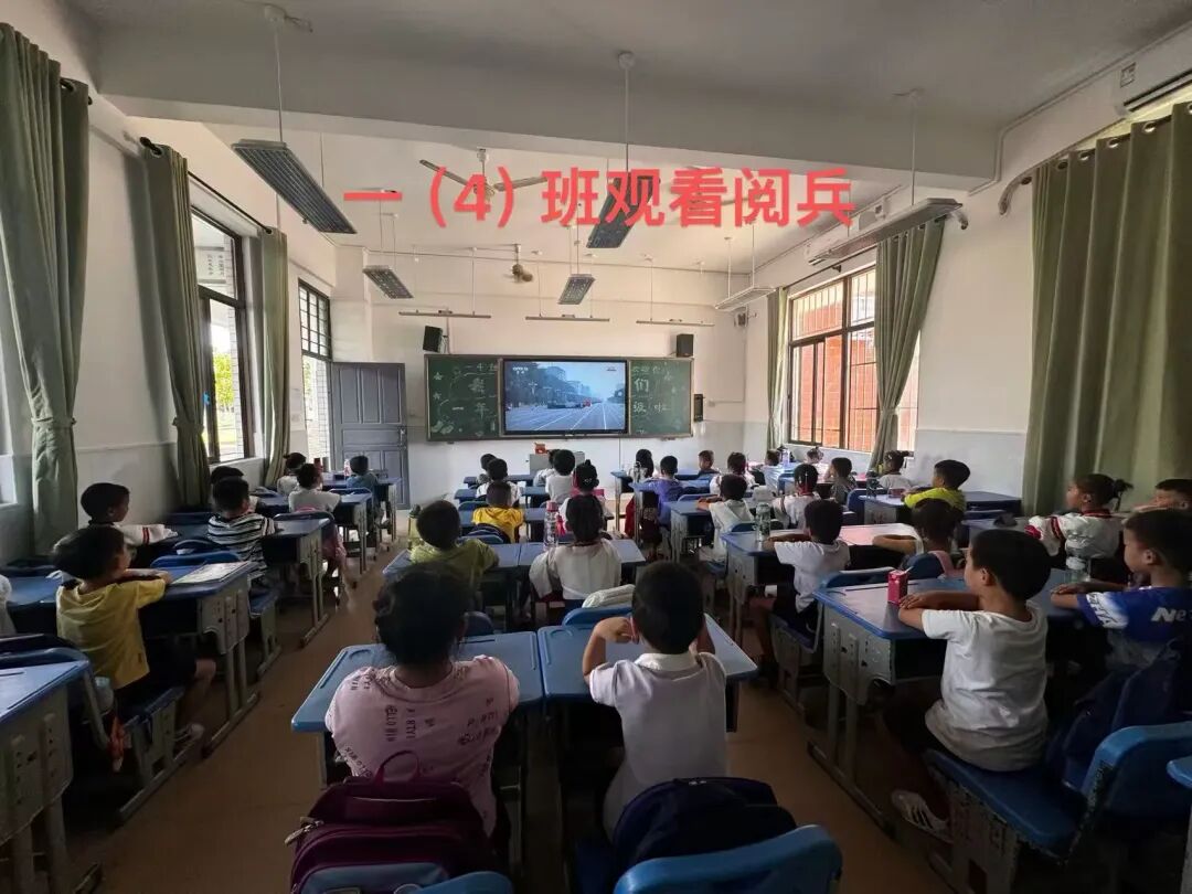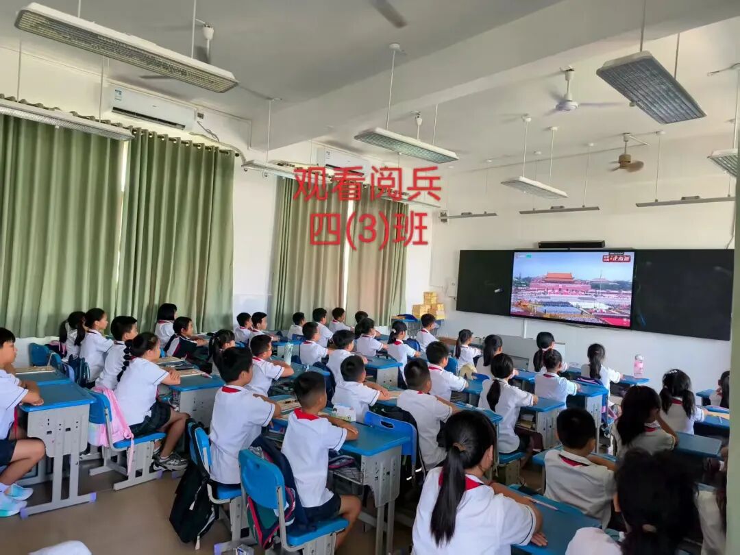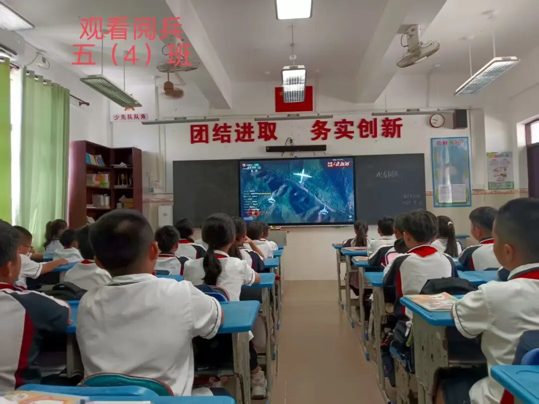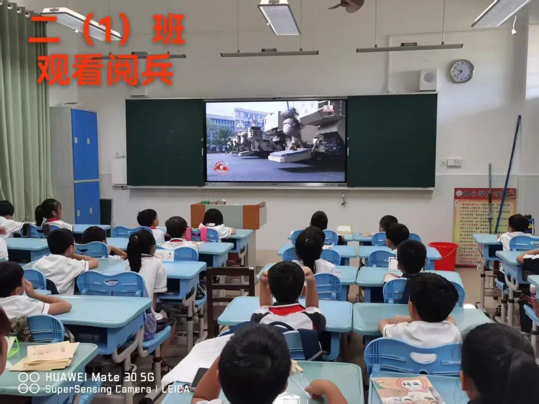 同学们目不转睛地观看阅兵仪式,被眼前的壮观场面所震撼。那铿锵的正步声,如同敲响在心中的战鼓,激励着同学们要努力学习,为实现中华民族的伟大复兴而贡献自己的力量。