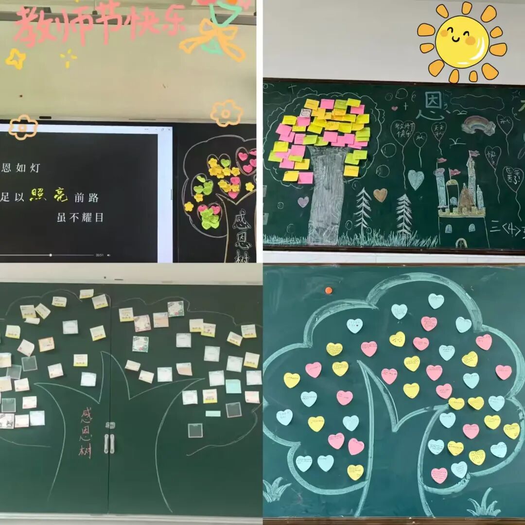 黑板上的“感恩树”枝繁叶茂,每片“叶子”都是一张便利贴,写着学生们的心里话:“老师,笔记我都抄好了”“谢谢您总鼓励胆小的我”……