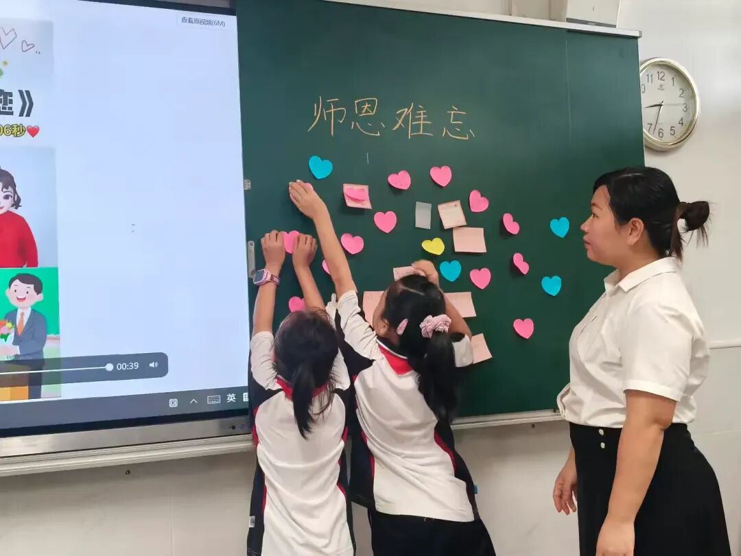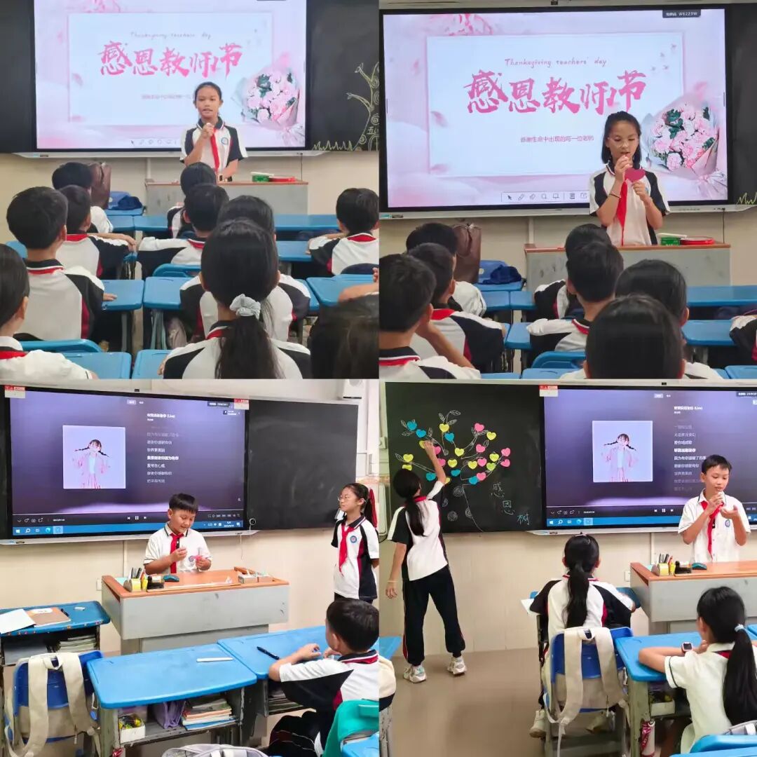 在教师节到来前的周一主题班会课上,各班早已拉开“感恩教师节”的序幕。班主任们带着学生细数师恩:从课堂上的耐心讲解,到课后的贴心叮嘱;从犯错时的温柔引导,到进步时的真心喝彩。孩子们在分享与交流中,慢慢读懂了老师“藏在细节里的爱”,也悄悄在心里种下了“表达感谢”的种子,为节日当天的温暖互动做好了情感铺垫。