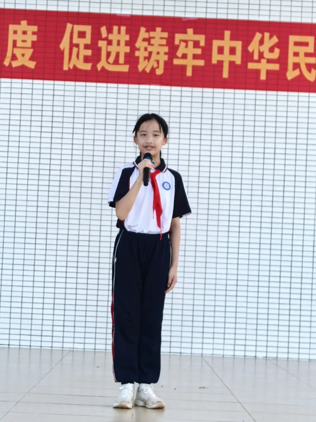 学校德育处主任随后发表讲话。她从法律、校规、道德三个层面深入浅出地讲解了学生欺凌的界定、表现形式及其严重后果,强调了学校对欺凌行为“零容忍”的态度。她还向全体学生提出了三点希望:一是增强自我保护意识,二是学会理性处理矛盾,三是积极向老师或家长求助。讲话内容详实、教育性强,进一步提升了学生的法治观念和文明素养。