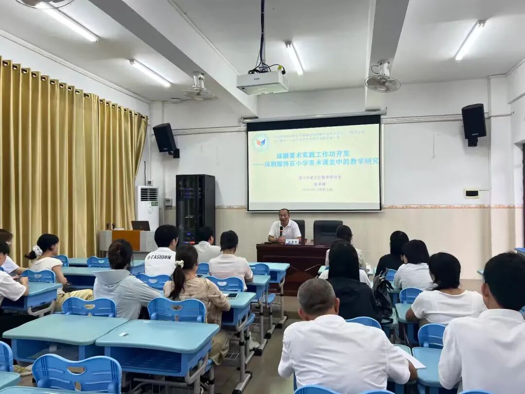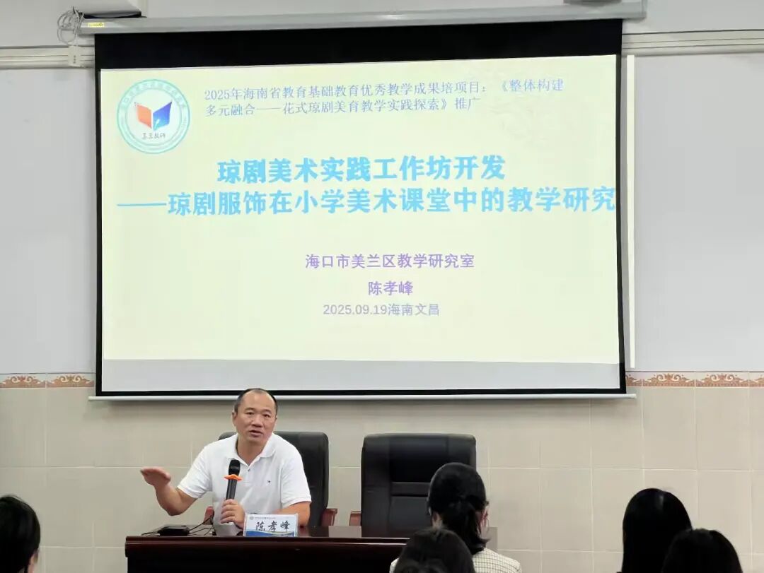 为深化基础教育美育改革,推动海南省优秀教学成果落地校园,2025年9月19日,文昌市文城中心小学与海口市美兰区教学研究室携手,围绕2025年省基础教育优秀教学成果培育项目《整体构建 多元融合——花式琼剧美育教学实践探索》,共同举办送教送训暨联合画展推广展示活动,让传统琼剧文化与美育智慧在校园绽放光彩。