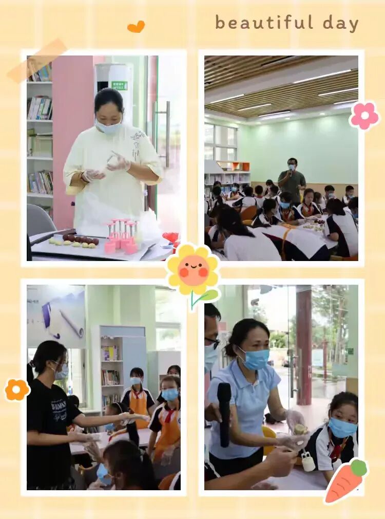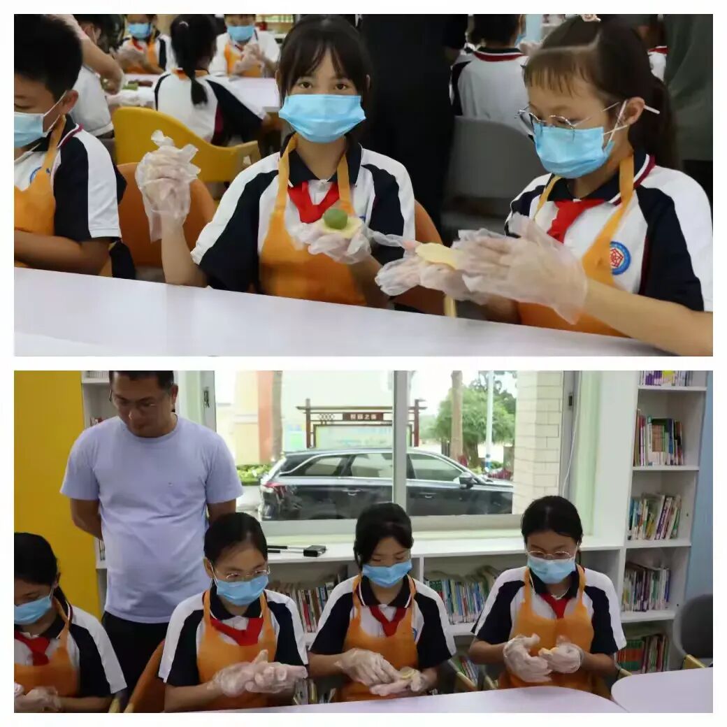 活动将启,糕点师傅备好馅料,老师们忙着分发馅料,还同步递上口罩、手套与围裙,细致护安全。