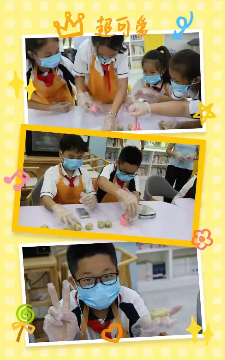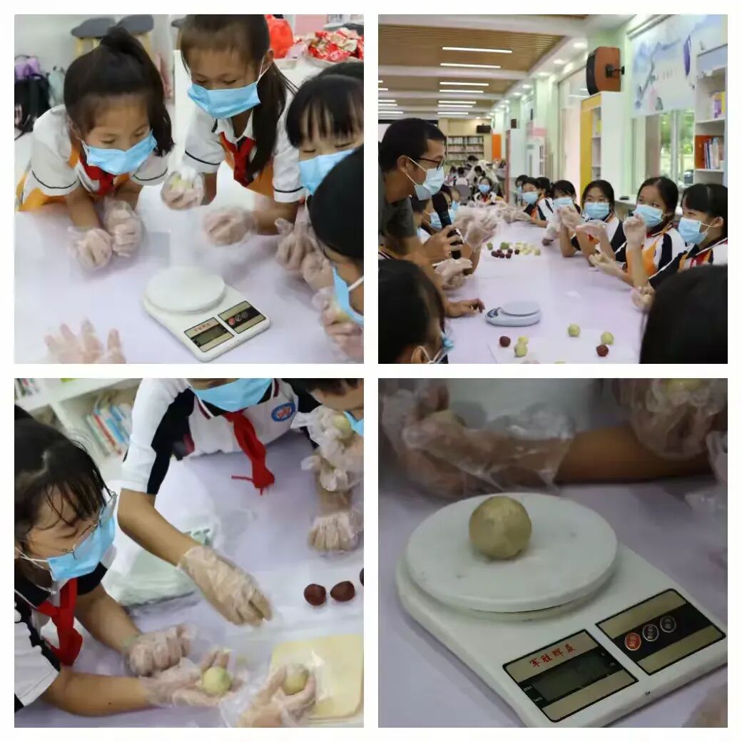 糕点师傅在旁细致指导,孩子们捧着月饼胚轻放食物称。看着称上的数字大多停在50克左右,大家惊喜发现:“这就是标准小月饼的重量!”,亲手操作的模样满是专注。