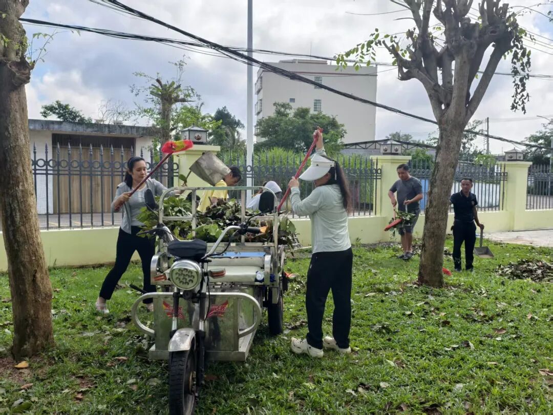清障行动一开启,大家便迅速投入战斗:有的手持扫帚清扫落叶,让堆积的残枝败叶“归位”垃圾桶;有的合力搬运断枝,将阻碍通行的障碍逐一清除;还有人细致捡拾角落的杂物,不放过任何一处卫生死角。弯腰、清扫、搬运,重复的动作里满是认真,原本狼藉的区域,在大家的协作下渐渐恢复往日的整洁模样。