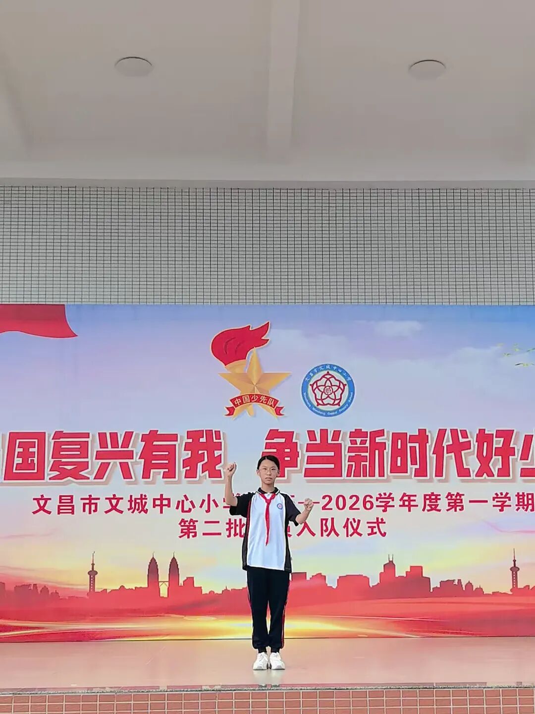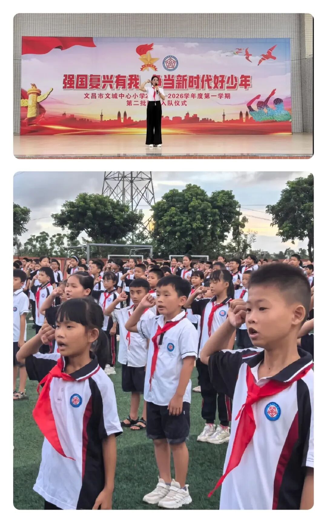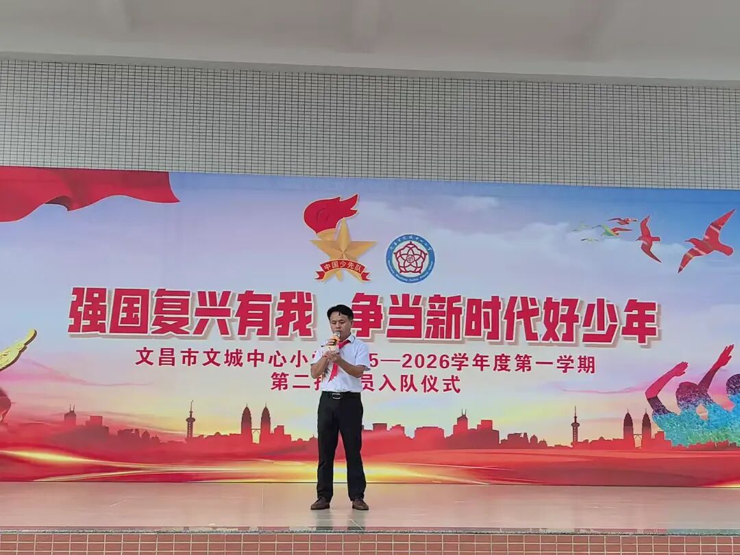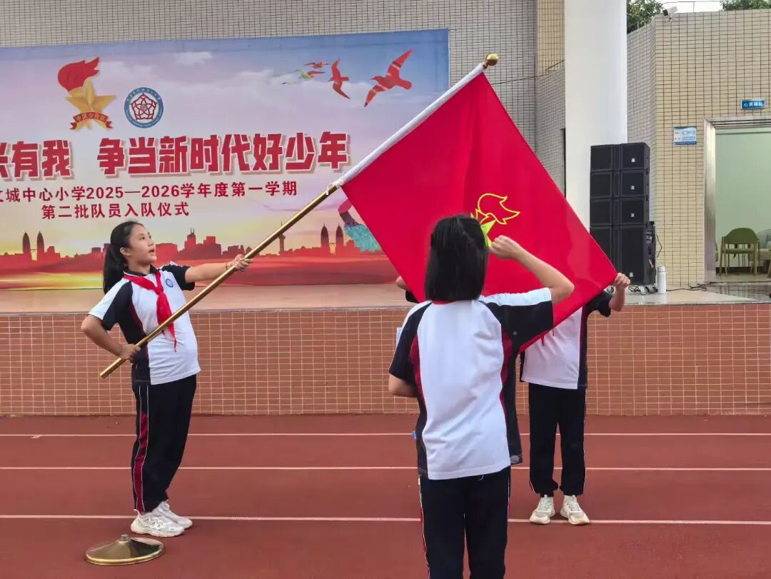 红领巾,是荣誉,更是责任;入队仪式,是成长,更是启航。2025年10月13日下午,文昌市文城中心小学在学校操场隆重举行“强国复兴有我 争当新时代好少年”第二批队员入队仪式。在庄严的队旗下,一批新队员光荣加入中国少年先锋队。