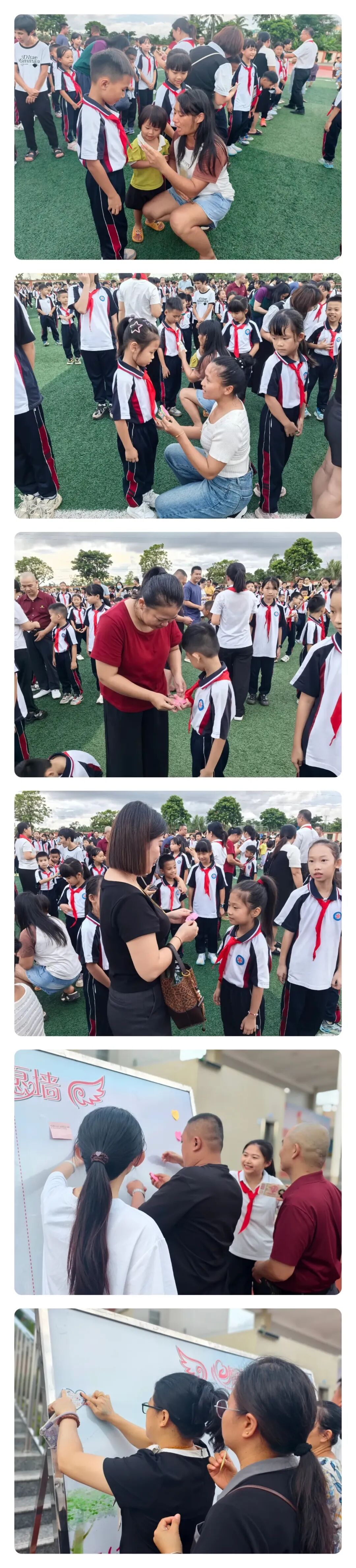家长代表现场分享心愿卡内容,字里行间充满对孩子们的殷切期望与深情祝福。随后,新队员与家长一同将心愿卡贴上“心愿墙”,一张张小卡片汇聚成一片希望的海洋,见证家校共育的温暖力量。