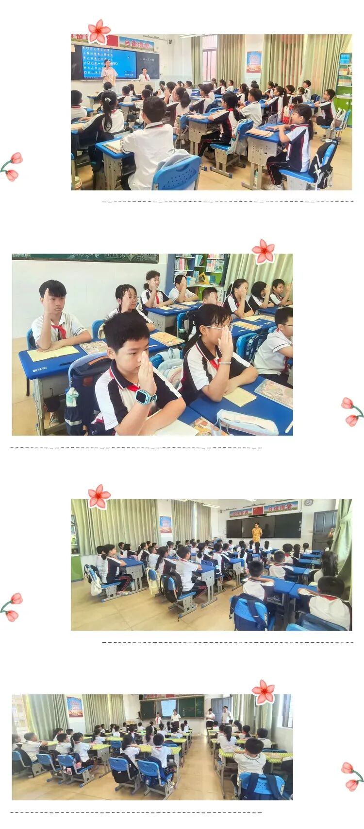 本次活动以班级为单位,覆盖全体学生。从课前准备、学具摆放、师生问好、坐姿站姿、写字姿势、握笔姿势、举手发言、小组合作、下课礼仪等各个环节进行了全面、细致的检阅。全校师生积极参与,训练有素,诠释了规范之美,展现出了我校积极向上、自信昂扬的班级精神风貌与扎实的课堂常规素养。