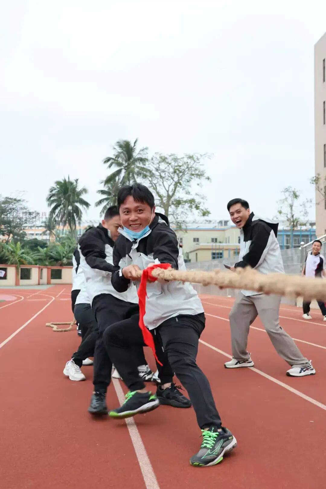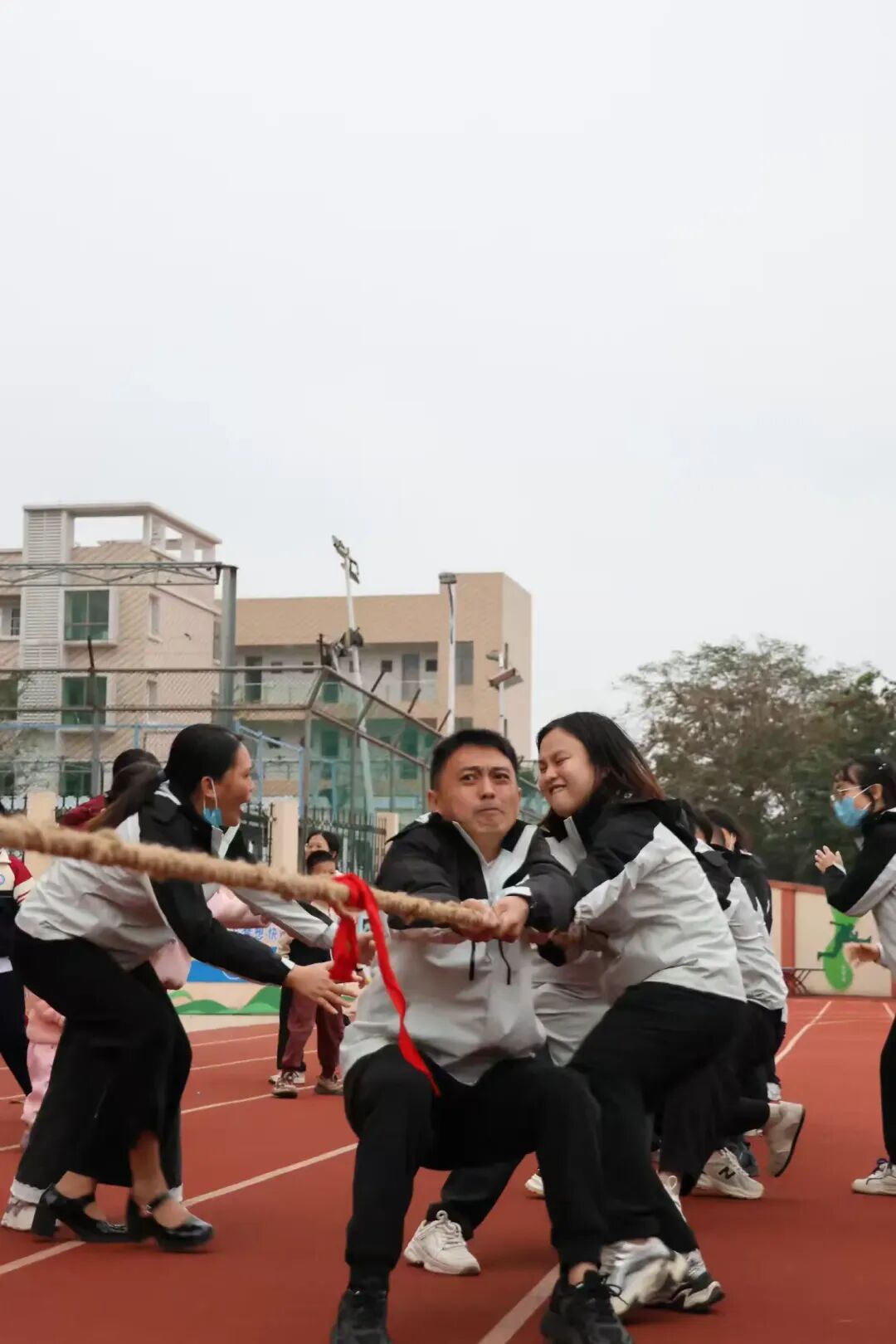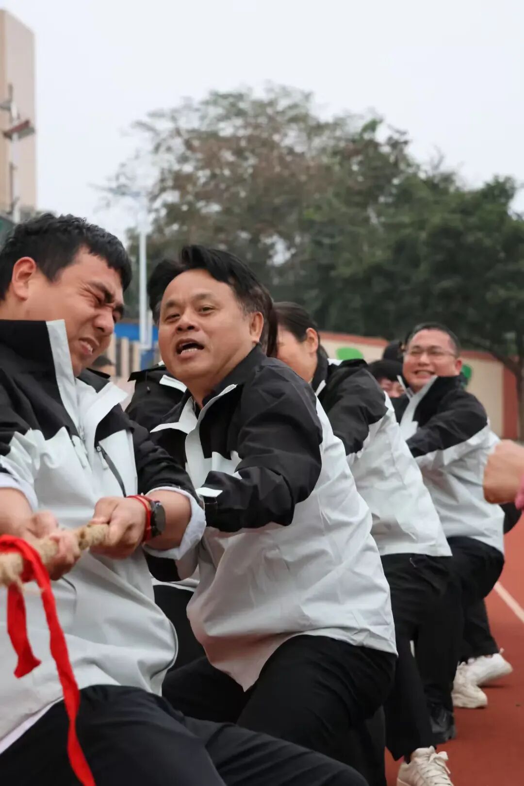 压轴登场的拔河比赛更是将氛围推向高潮,各组队员紧握长绳、脚蹬实地、齐心协力向后拉,脸庞涨得通红却丝毫不敢松懈,场外啦啦队齐声呐喊、加油鼓劲,口号声、欢呼声震彻操场,尽显文城教职工团结一心、奋勇拼搏的精神风貌。