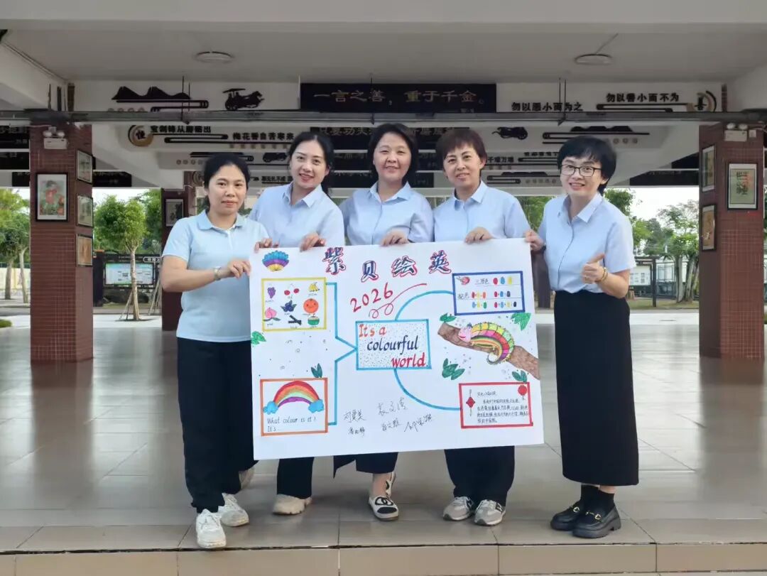 紫贝绘英小组以“It's a colourful world”为主题,打造了英语、美术、科学与传统文化的跨学科方案设计。用葡萄、樱桃等水果对应英语色彩词汇,搭配“What colour is it?”的基础句型,让语言学习变得鲜活有趣;通过变色龙的彩虹斑纹,直观展示三原色配比规律,把美术创作和科学原理巧妙结合;还加入“中国红”的文化小知识,让学生在色彩中读懂传统吉祥寓意。