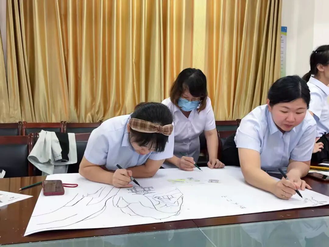 在创作现场,老师们以小组为单位,围绕各自选定的跨学科主题设计思维导图。