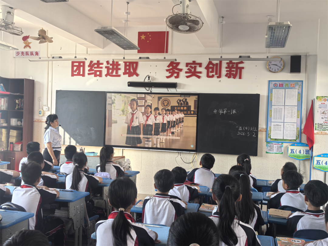 春风送暖,万象更新。2026年3月2日,文昌市文城中心小学迎来了新学期正式开课的第一天。为帮助学生迅速调整状态,以饱满的精神面貌投入新学期的学习生活,学校德育处精心组织各班级开展了以“策马扬鞭启新程 开学迎接新气象”为主题的“开学第一课”主题班会活动。