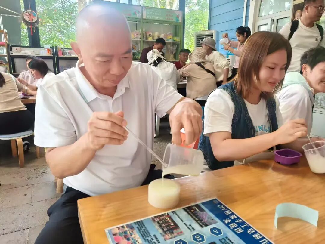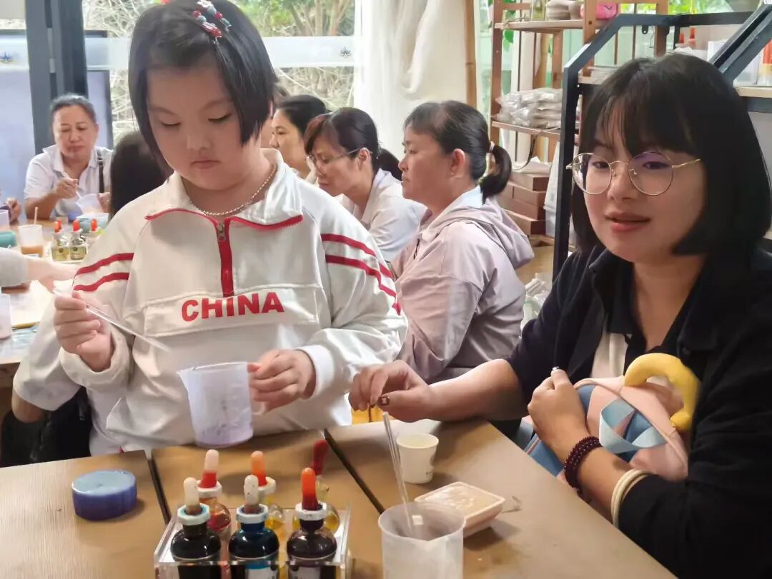 稍作休憩,精油香皂手作体验温馨开启。专业老师细致指导,大家或亲子搭档、或好友结伴,随心挑选心仪香型,细心调配、入模塑形,每一步皆藏巧思,每块香皂都凝着专属心意。