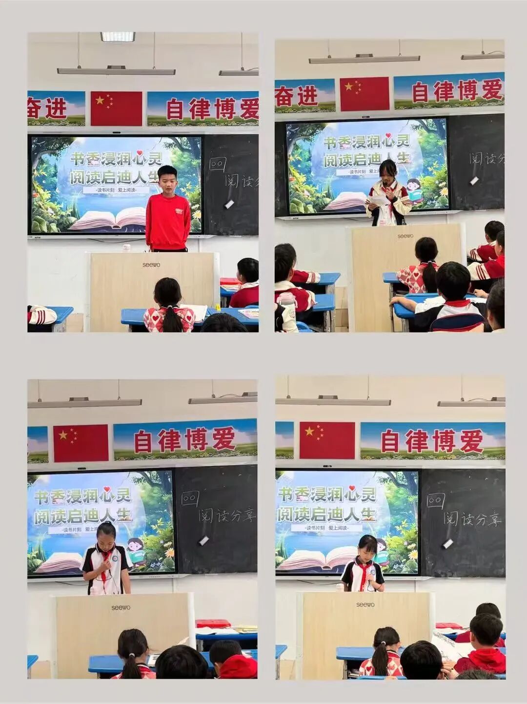 瞧!同学们在台上津津有味地分享着自己寒假阅读的收获与成长。