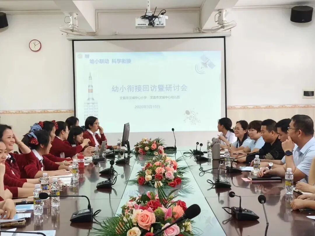 回访结束后,园校双方召开了幼小衔接专项研讨座谈会。会议由文昌市文城中心小学与文城中心幼儿园联合组织,双方校(园)领导、教导处及骨干教师代表共同参与。