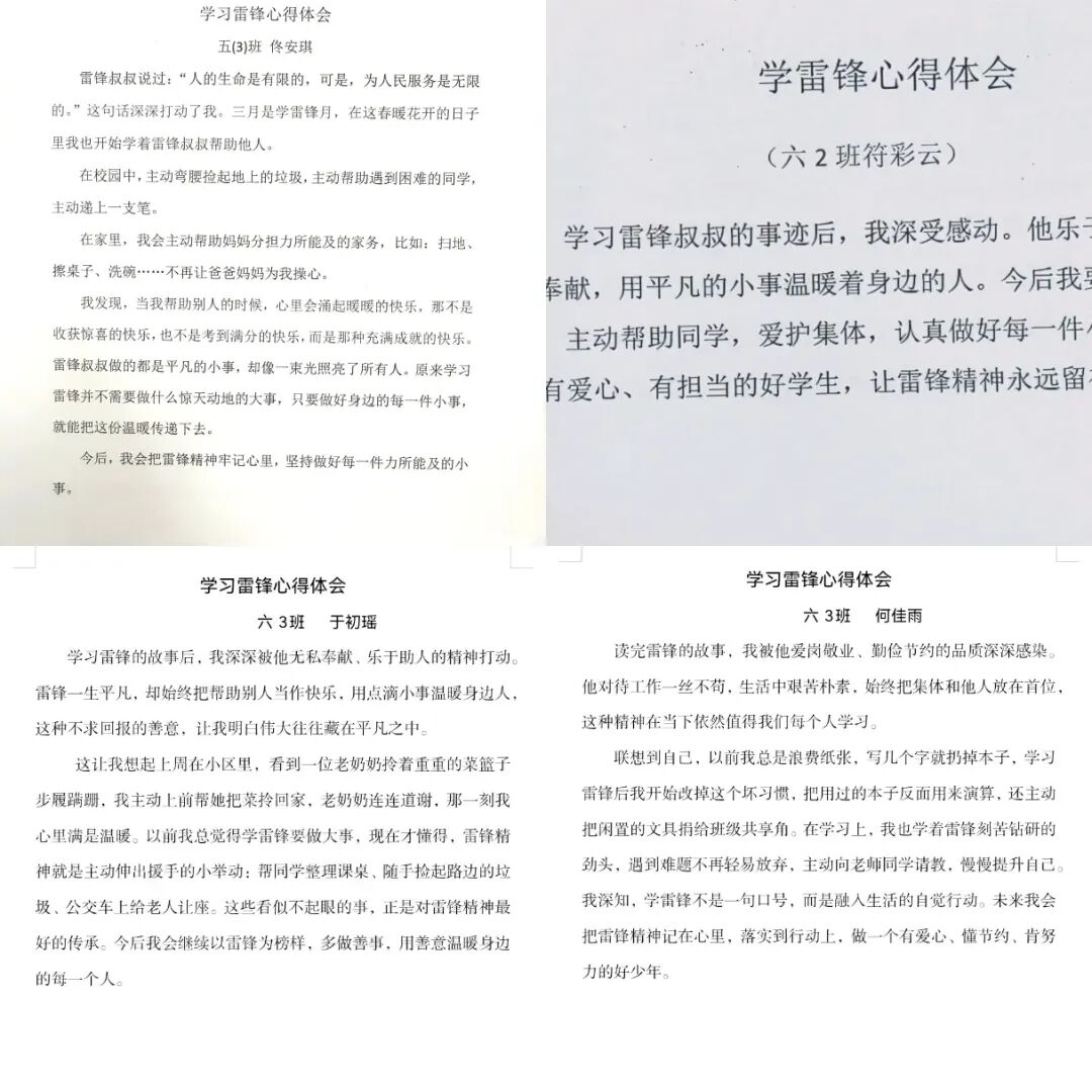 本次学雷锋月以“识雷锋、忆雷锋、唱雷锋、做雷锋”为主线,各班扎实开展活动,让雷锋精神真正走进师生生活。