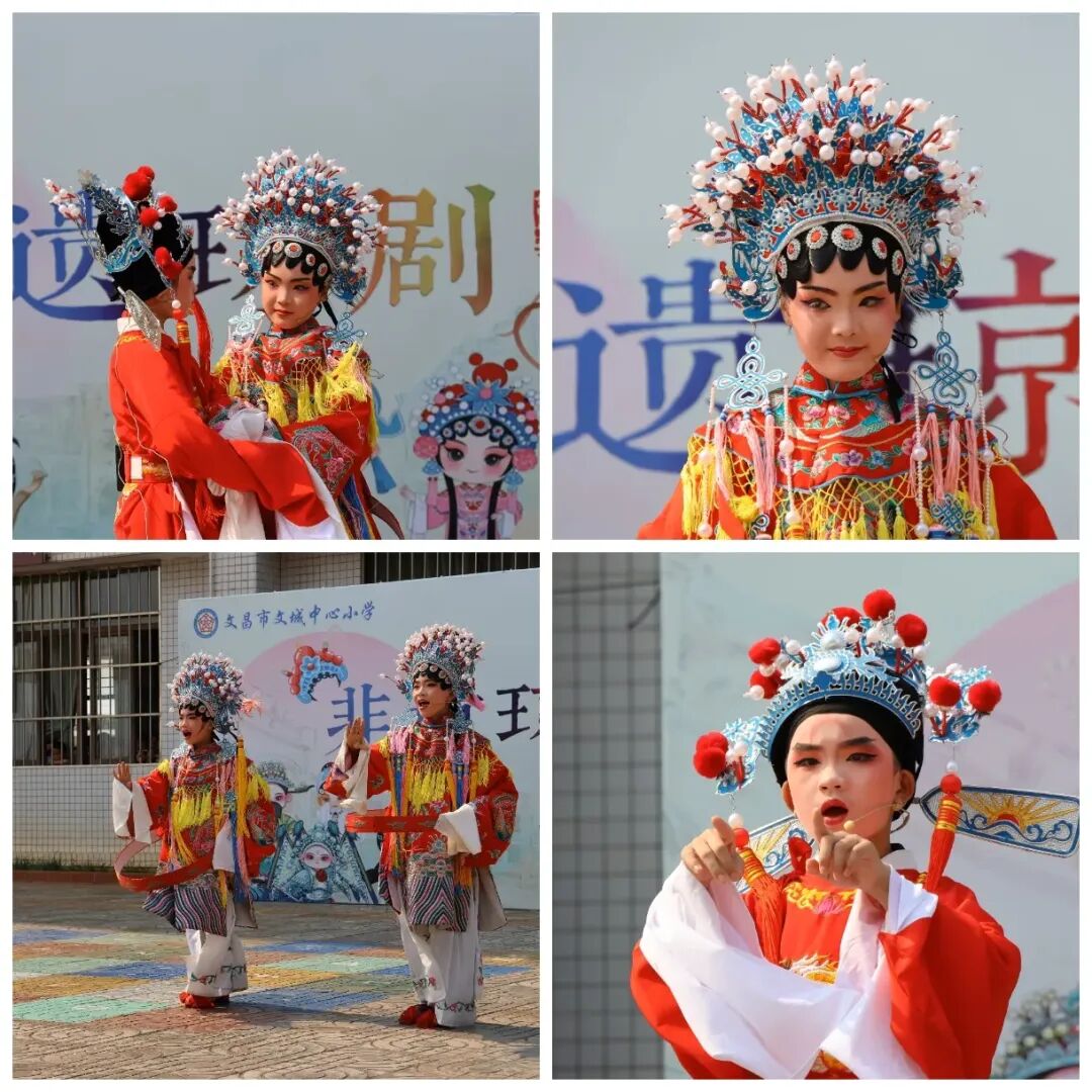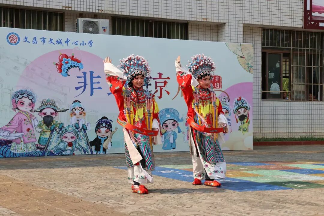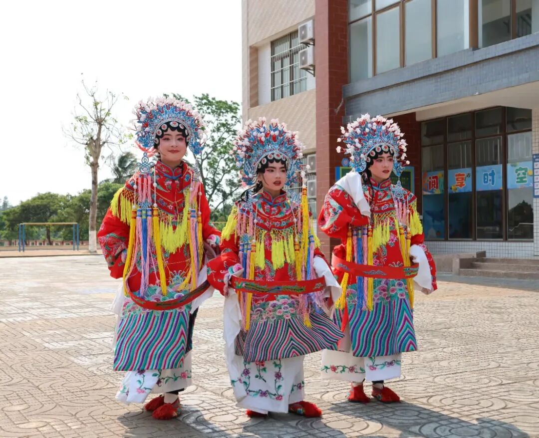 特色课程互动开始啦!第一个环节是琼剧表演,我校琼剧社团的同学们身着精致的琼剧服饰,用婉转的唱腔、优美的身段,为香港纯阳小学研学团演绎了独具海南特色的琼剧片段,让他们近距离感受琼剧文化的魅力,领略海南传统文化的博大精深。