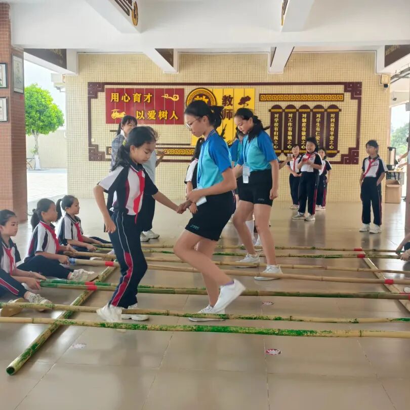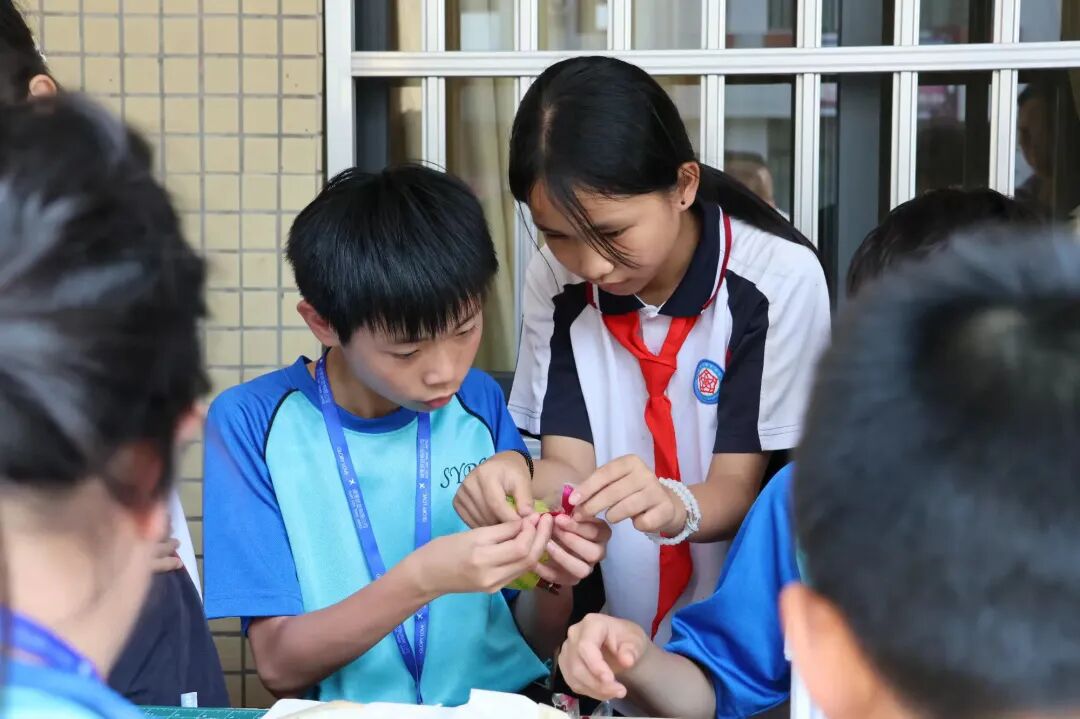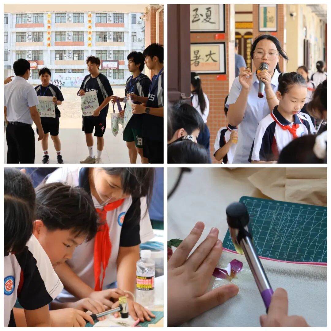 琼剧表演结束后,竹竿舞、植物拓染互动环节随即展开。我校社团的同学们主动上前,热情邀请香港来访学子一起参与,手把手教他们制作植物拓染、跳竹竿舞。大家相互配合、欢声笑语,在动手实践中感受传统手工艺的乐趣,在欢快的节奏中增进彼此的了解,陌生感在互动中逐渐消散,友谊在欢笑中悄然滋生。