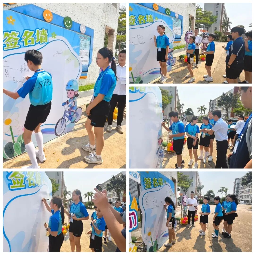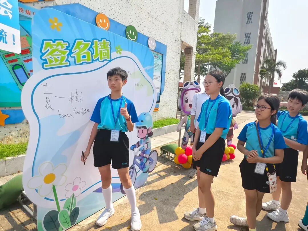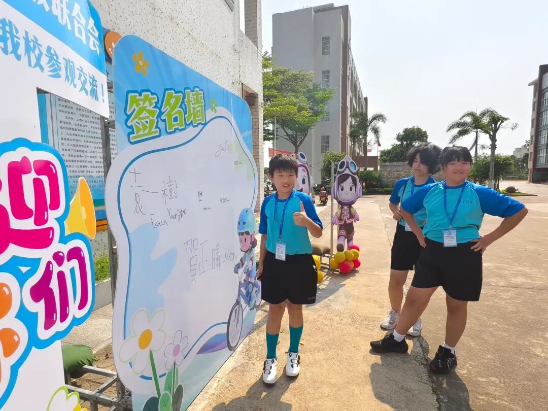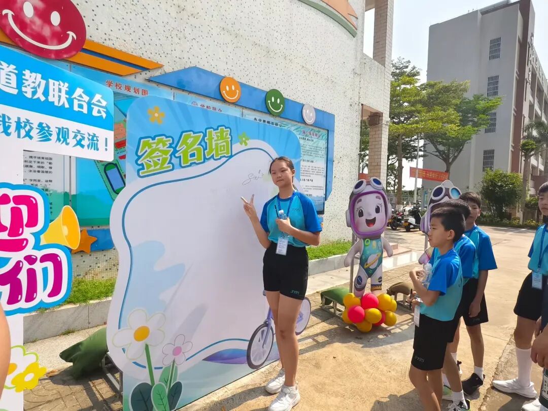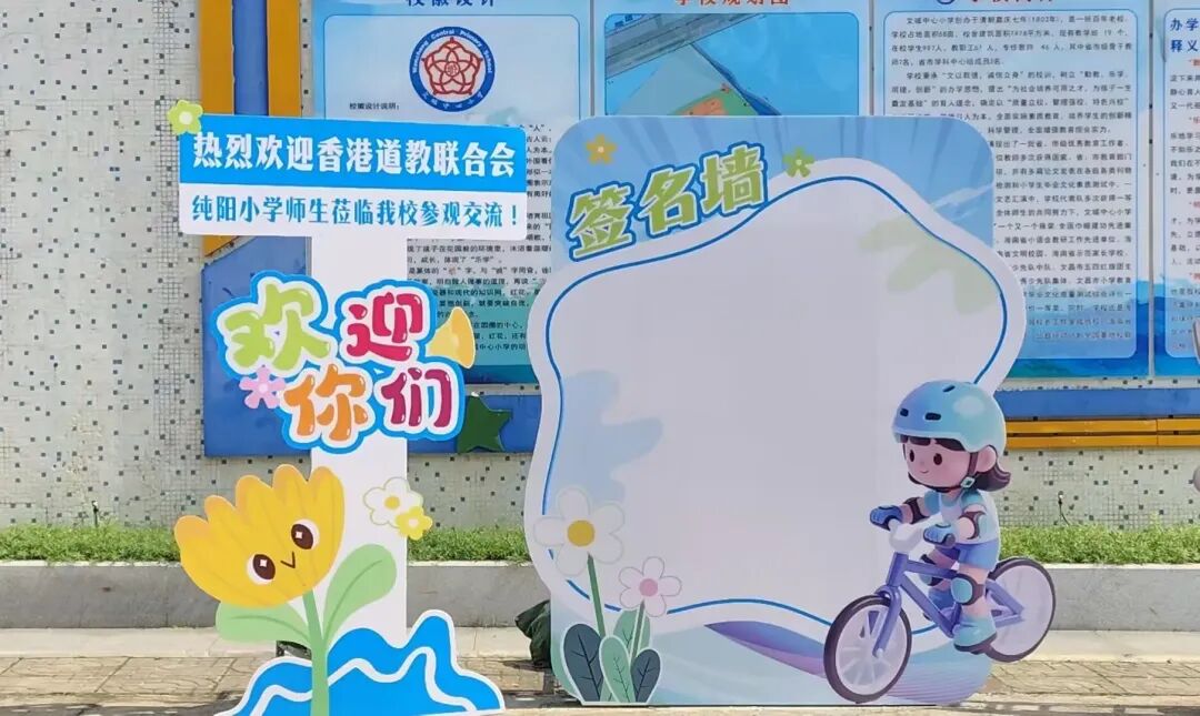 研学团师生来到签名墙前,一笔一划写下自己的名字,定格这份跨越琼港的缘分。他们还与我校吉祥物(文飞飞、紫悦悦)亲切合影,学校为他们送上了可爱的吉祥物礼品,一份小小的礼物,承载着两地学子的真挚情谊,也成为了本次联谊活动的珍贵纪念,美好在此刻定格。