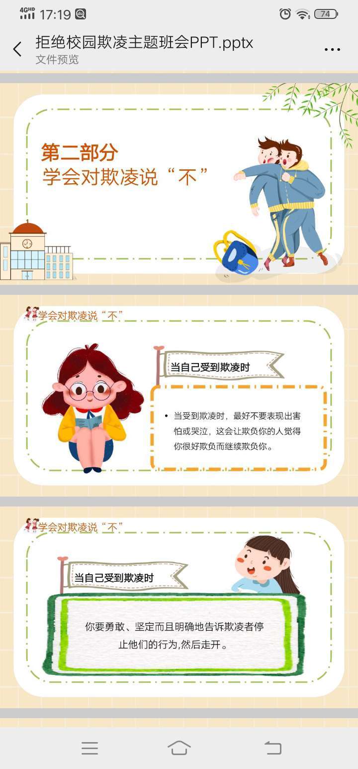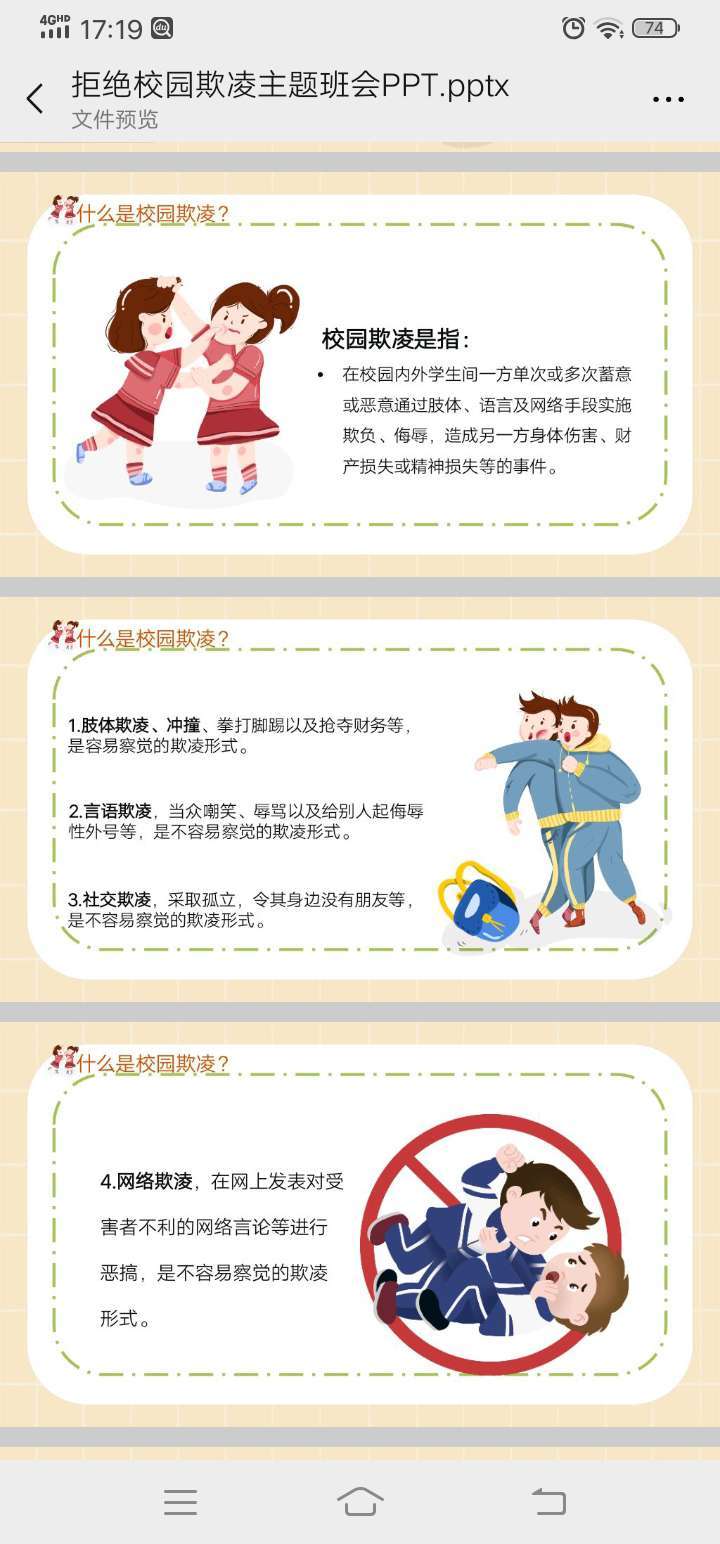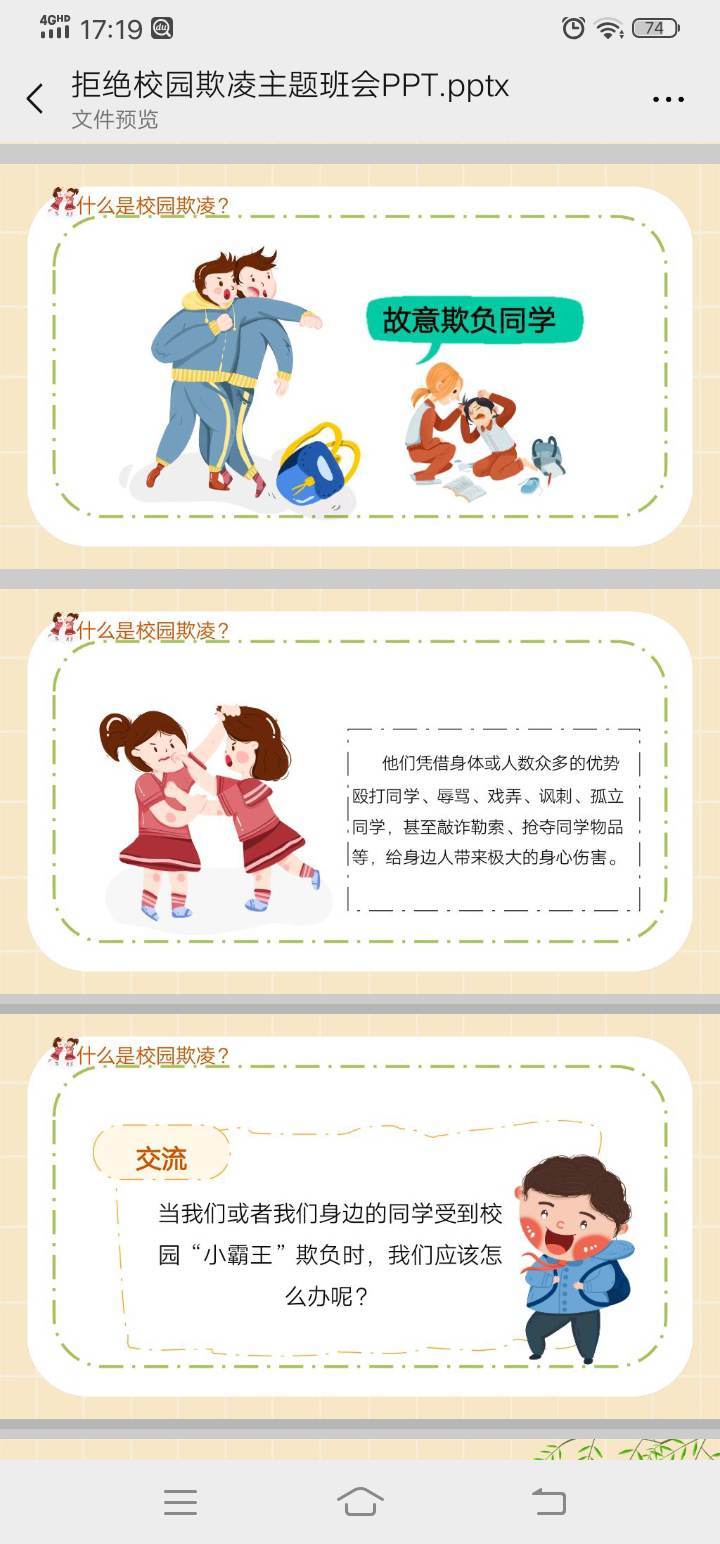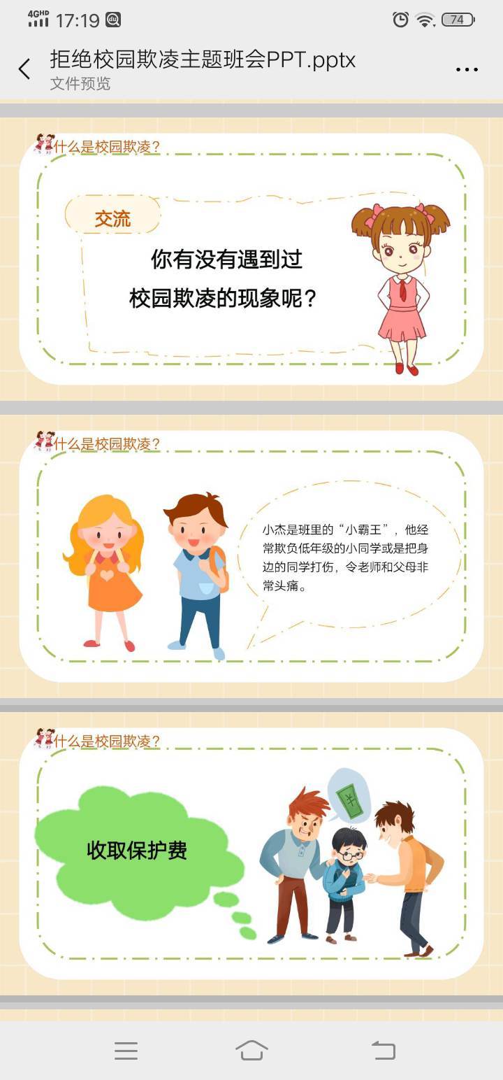 近年来,校园欺凌、暴力事件屡屡发生。学生的安全意识和法律意识薄弱。为了避免校园欺凌和暴力事件的发生,9月18日开展防校园欺凌主题班会。