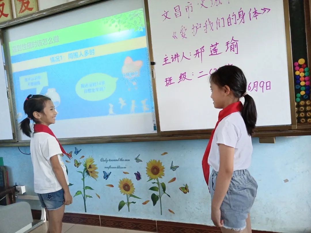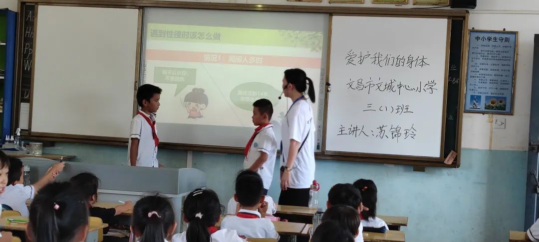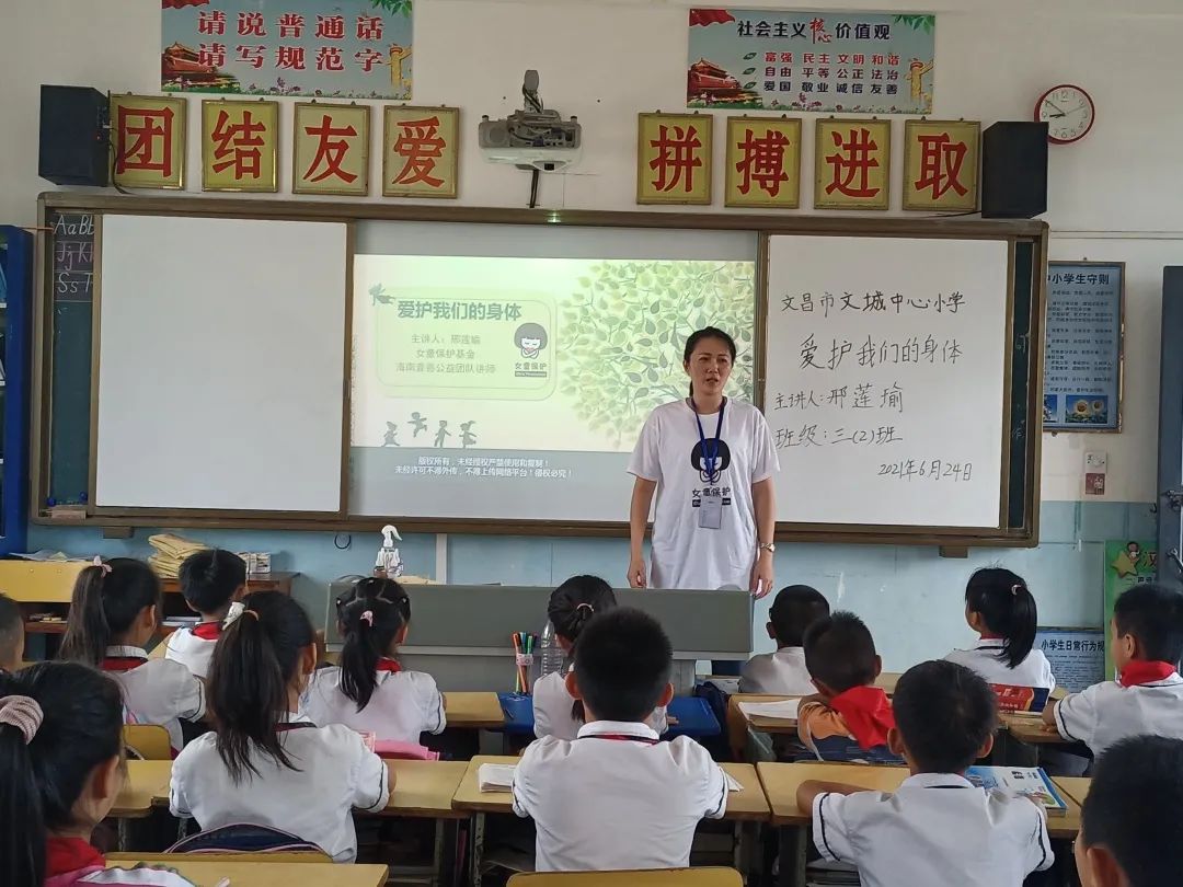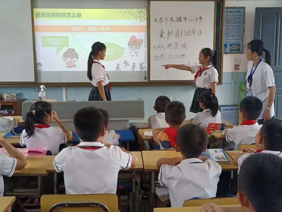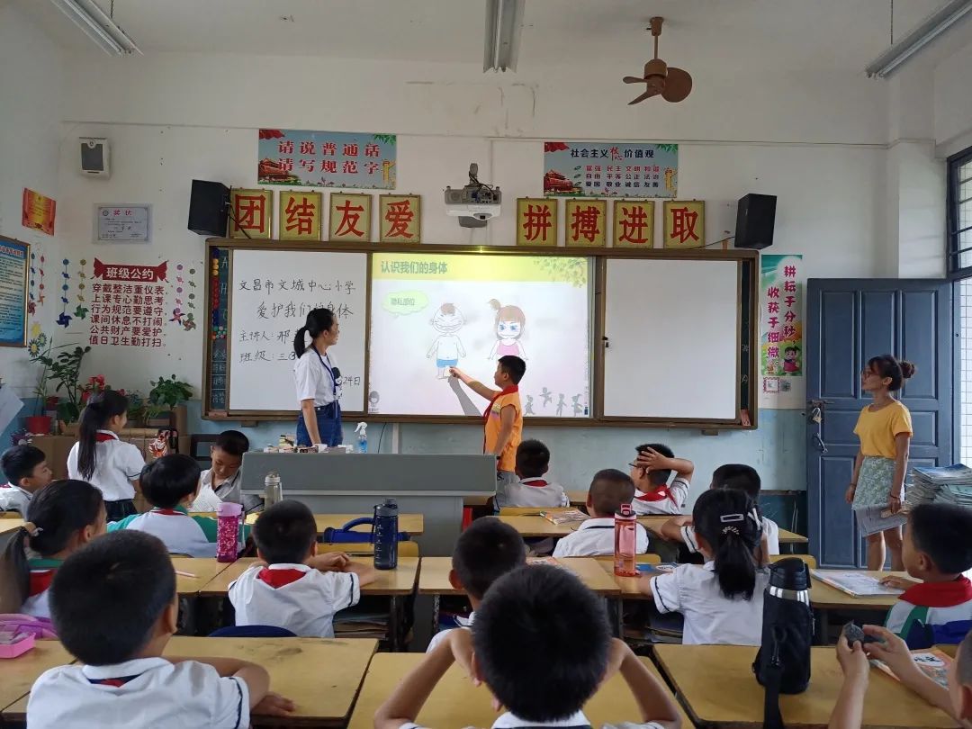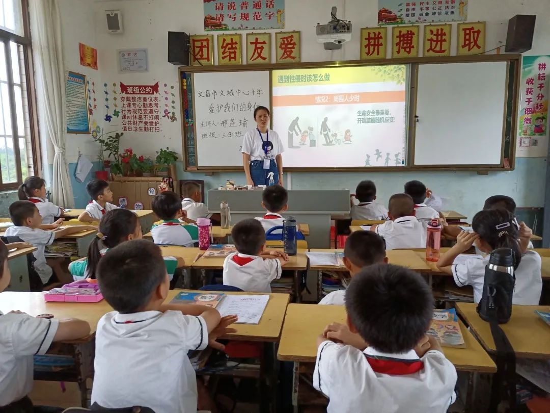 为进一步保护未成年人免遭侵害,提高学生的防性侵意识和自我保护能力,加强学生的心理、生理安全教育,促进儿童健康成长,维护家庭安宁和社会和谐稳定,营造关爱呵护儿童成长以及维护儿童合法权益的氛围,近日,文昌市文城中心小学开展“儿童保护 守护童年”为主题的儿童防性侵知识科普活动。本次活动由我校已通过考核的“女童保护”讲师邢莲瑜老师和苏锦玲老师分别在一至三年级每班上一堂《爱护我们的身体》预防性侵教育课。