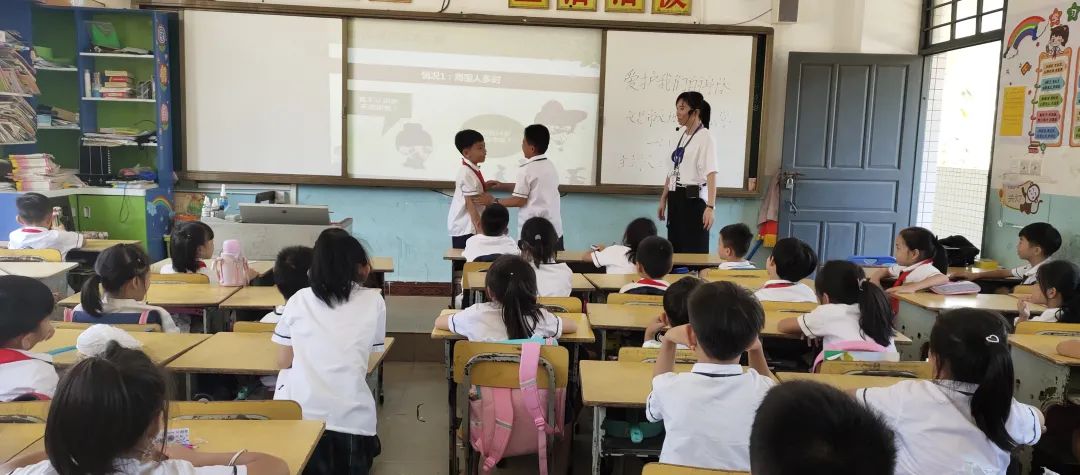 课堂中穿插了趣味问答、互动游戏、情景模拟等环节,孩子们非常踊跃,争相举手回答,与老师开心互动。在轻松的游戏互动与生动的情景剧中,孩子们学习了如何分辨和防范性侵害,了解了基本的性别常识,增强了自我保护意识。