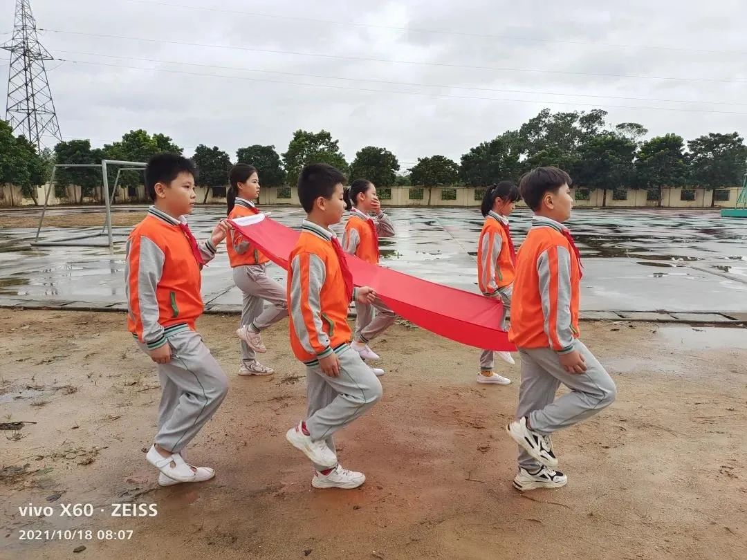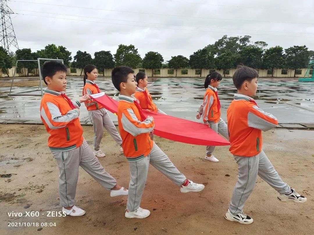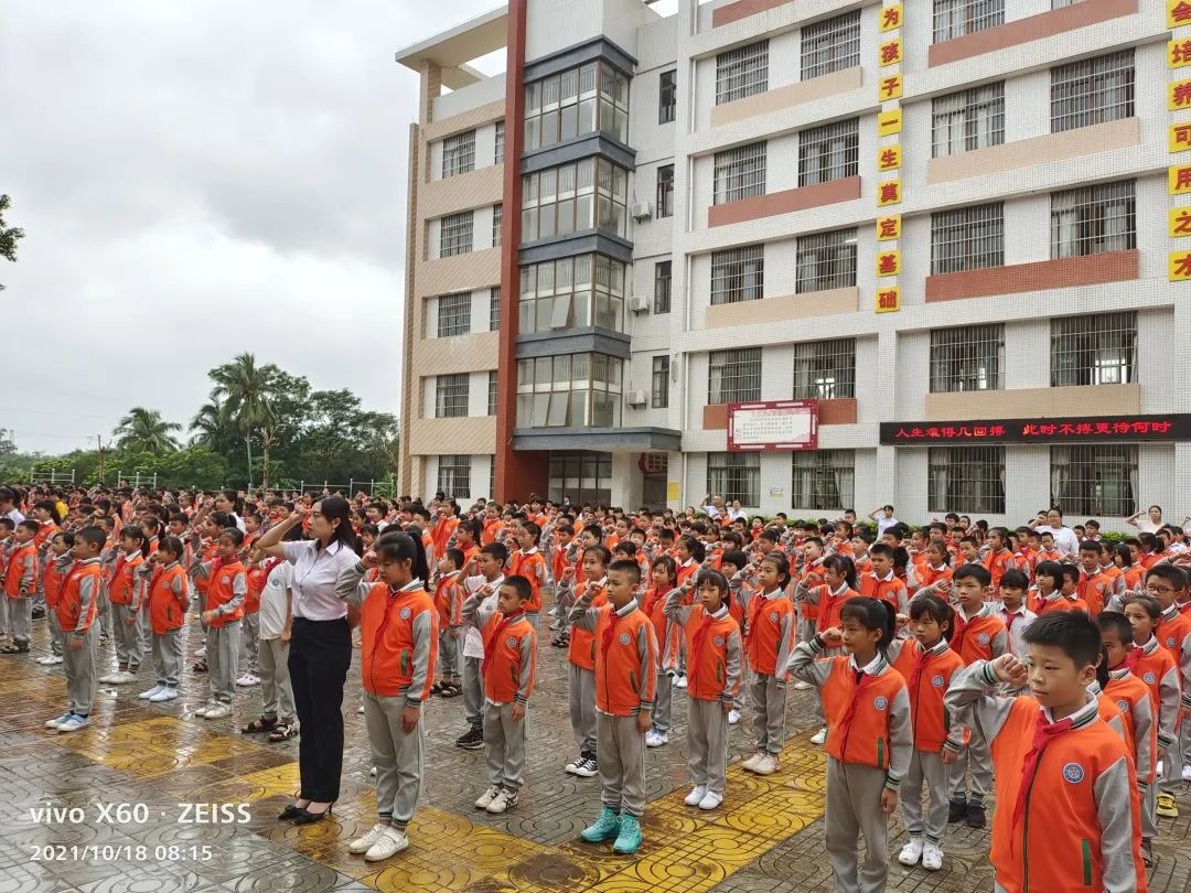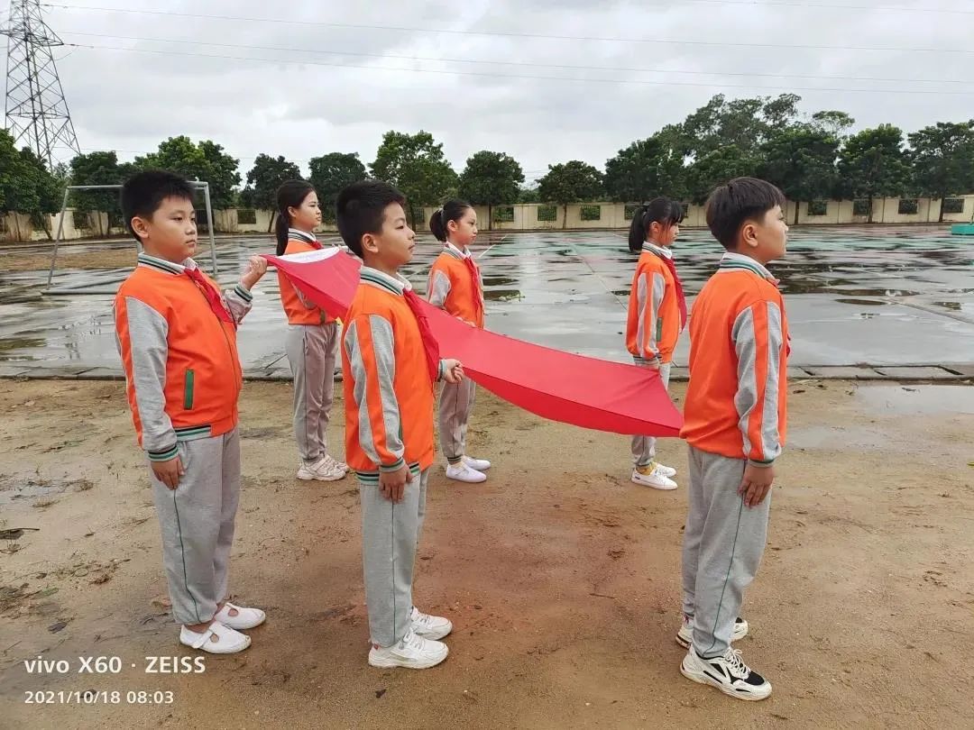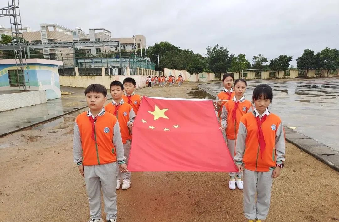 望着冉冉升起的五星红旗,全体师生庄严而肃穆,全体少先队员行队礼,全体老师行注目礼。看!笔直的腰板、坚毅的眼神都表达了每个人内心对于禁毒的坚定。