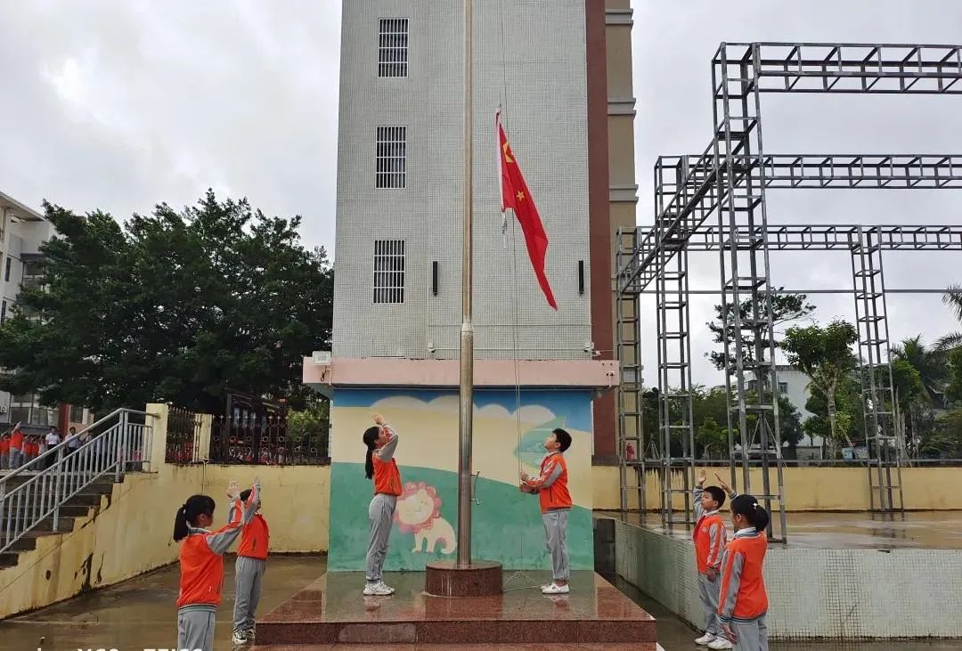庄严的升国旗仪式开始,随着护旗手护卫着鲜艳的五星红旗,迈着铿锵有力的步伐走向国旗台。在激昂雄壮、催人奋进的国歌声中,鲜艳的五星红旗冉冉升起。